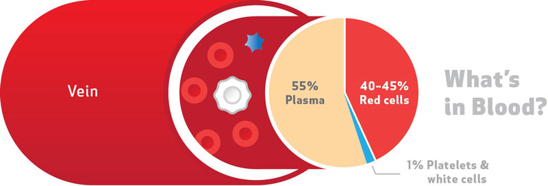 خون؛ مایعی لزج است که بخشی از آن را مایعی به نام پلاسما و بخش دیگر را عناصر جامد معلق در پلاسما تشکیل میدهد.بخش جامد خون شامل اریتروسیتها (گلبولهای قرمز خون)، لوکوسیتها یا گلبولهای سفید و پلاکتها است.